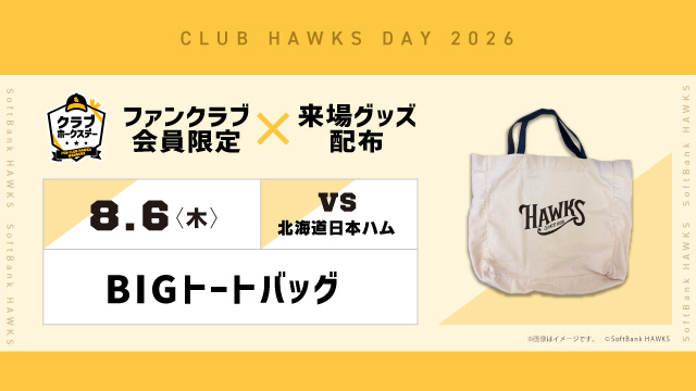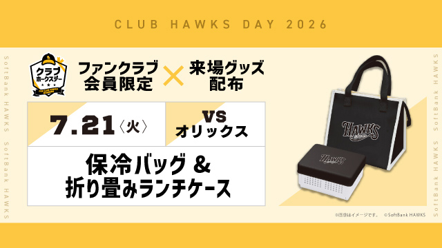 ※配布特典はご来場のクラブホークス会員の皆さまへお渡しできるよう十分な数を用意しておりますが、予定数量に達した際には別の商品をお渡しさせていただく場合がございます。