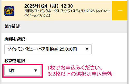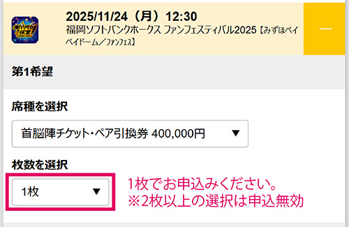 - すべての特別チケットの中から合計で第1希望~第3希望まで選択可能です。
