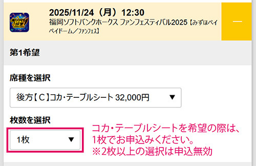 - ※お一人様につき1券種6枚まで購入可能です。(セット販売の席種は1セットまで)