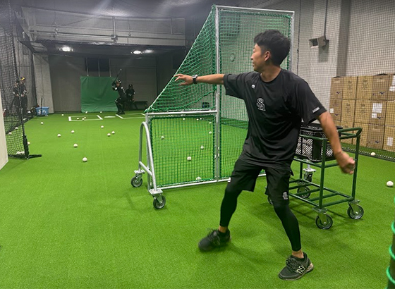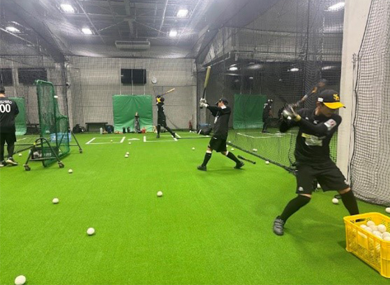午前中はホークス選手も利用する打撃ゲージを使ってバッティング練習とトレーニングで汗を流しました。