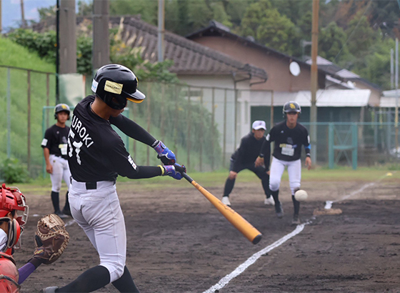 久留米戦では相手チームに先制され、また3回までをノーヒットに抑えられますが、4回・5回と四死球に足を絡めた機動力を生かして逆転し、そのまま逃げ切り辛勝となりました。勝利したものの、打線は1安打に抑えられ苦しい展開が続き、課題が残る試合となりました。
