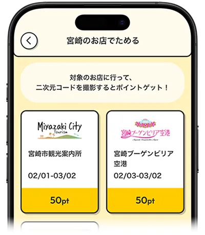 宮崎市内のお店に設置された二次元コードを読み取ると、タカポイント50ptもらえる!