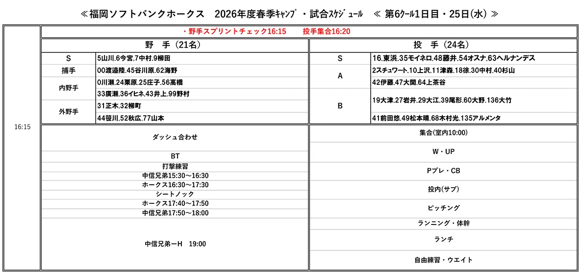 | 紅白戦 | ホークスvsホークスのアピール合戦!真剣勝負が見られます。 |