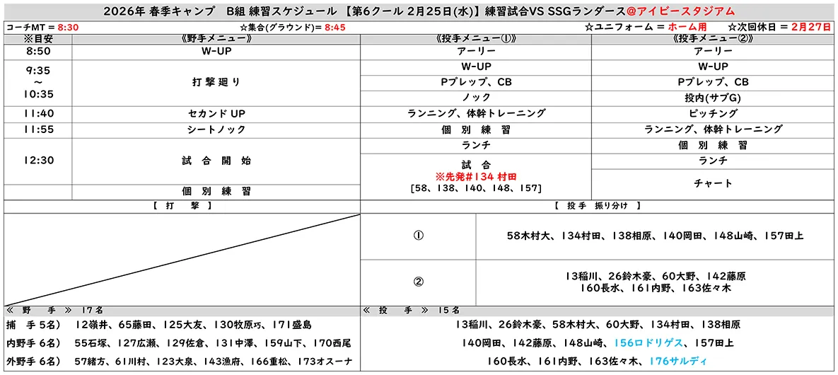 ※ 練習メニューの更新は確定次第となります。あらかじめご了承ください。