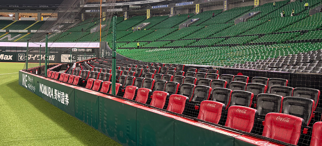 ●お客様により安心安全な観戦をお楽しみいただくために、防球ネットを設置しております。
