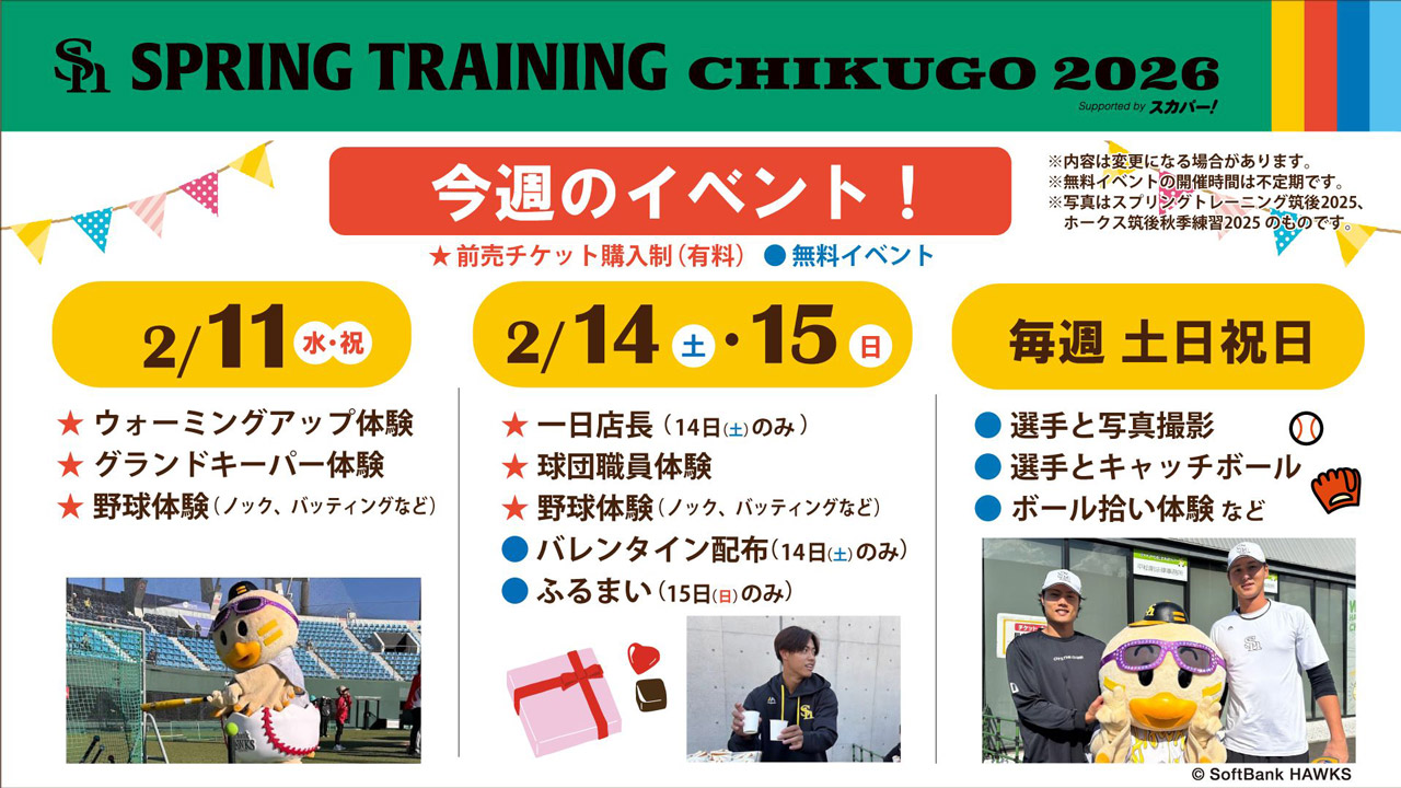 イベント ファーム2026/02/08 (日)【スプリングトレーニングin筑後】2/9~イベント情報! -