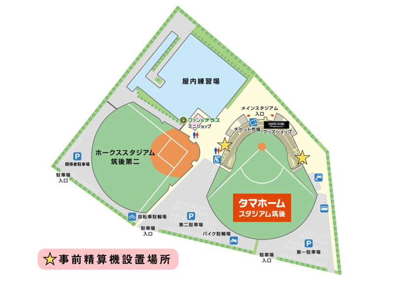 - ※大型車のご予約につきましては、HAWKSベースボールパーク筑後〈0942-42-1182〉までお問い合わせください。