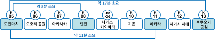 안내:지하철 도진마치역 하차 후 3번 출구로 나와 도보 약 15분 소요됩니다.
