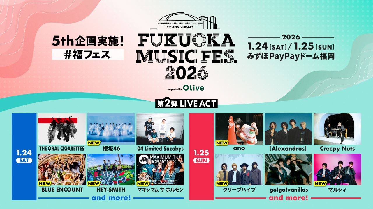 リリース2025/11/13 (木)【福フェス1/24・25】全出演アーティスト発表!最終先行受付開始 -