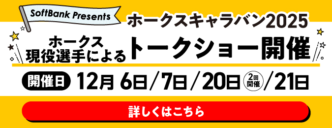 スポンサー イベント2025/11/25 (火)【ホークスキャラバン2025】選手トークショー開催決定 -