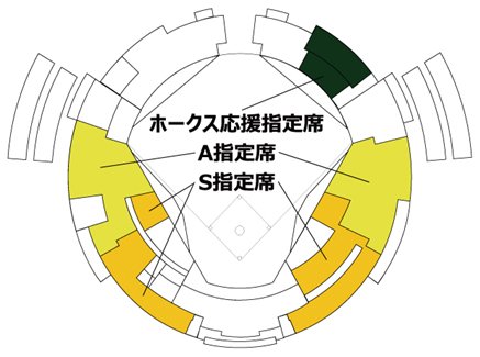 通常のS指定席、A指定席、ホークス応援指定席をご購入いただいても、割引価格では購入いただけません。