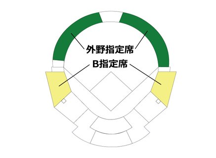 通常のB指定席、外野指定席をご購入いただいても、割引価格では購入いただけません。
