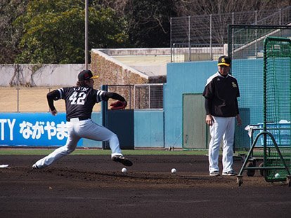 ファーストの守備につくということで、このように練習していたんですね(^^)とてもまじめで静かなナイスガイということなので、これから皆さんよろしくお願いしますね☆