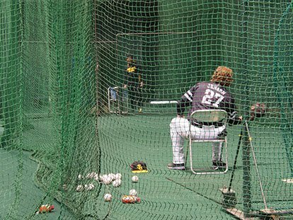 そんな時覗いた室内練習場。バッティングマシンを相手に、キャッチングの練習をしている選手がいました。