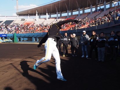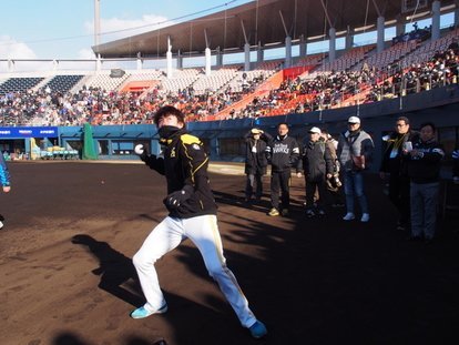 サインボールを投げるとき、飯田投手は左腕ですがいつも右で投げるので、その様子がとてもかわいらしく見えるんです(笑)ぜひそちらにも注目してみてください♪