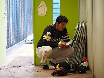 若い投手陣は、ブルペンに入るときもそうですが、バッティングピッチャーやシート打撃などの実戦形式のときは、マウンドに立つ前に自分の目標を設定し、降りた後に実際にどういう投球ができたかというものを記録しています。