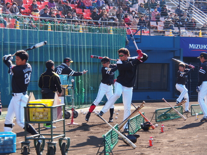 野手は長谷川選手・本多選手・吉村選手・明石選手の4人だけという、なんとも贅沢でちょっとさみしい光景でした(^^;)