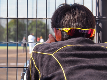 本多選手もフェンスにぴったりくっついて、試合を観ていました。