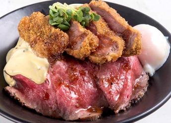 名物の牛カツは、サーロインを贅沢に使用した牛カツ丼として提供。
