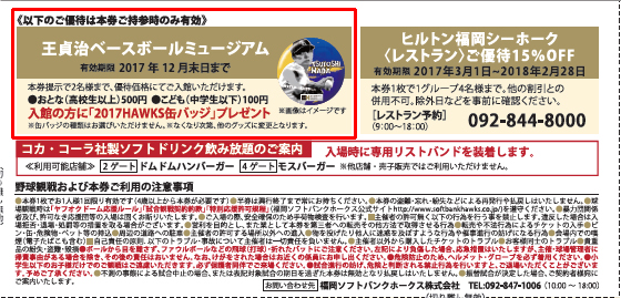 7ゲート横王貞治ベースボールミュージアム受付にご提示ください。