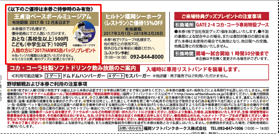 『2017ホークス缶バッジ』プレゼントの対象となるチケットは以下のとおりです。