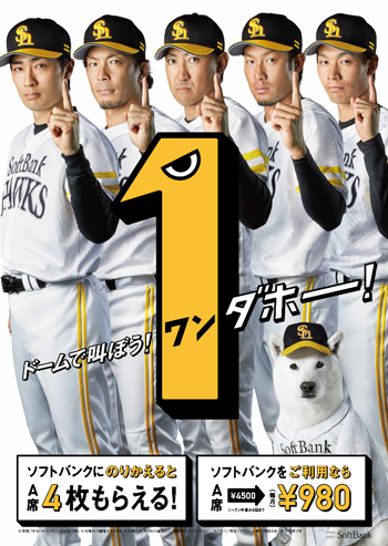 福岡ソフトバンクホークス株式会社とソフトバンク株式会社は、ペナントレースを盛り上げるために「1(ワン)ダホー!チケットキャンペーン」を2017年3月3日より開始します。「1(ワン)ダホー!」とは日本一を目指して選手とファンが一致団結するなどの意味が込められた、福岡ソフトバンクホークスの2017年のスローガンです。