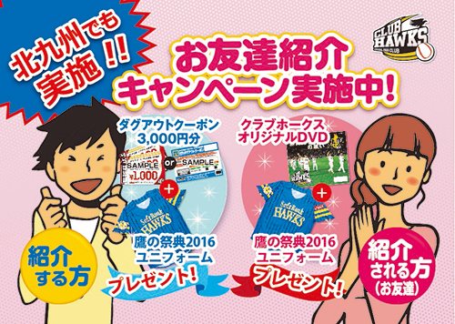 さらにすでに会員の方もお友達を紹介すると鷹の祭典ユニフォームがもらえます♪