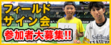 ヤフオクドームで開催するホークス主催公式戦(一部除く)にて、フィールドで行われるサイン会の参加者を大募集!!憧れの選手に間近で直接サインがもらえるイベントです。サイン会参加選手は当日までのお楽しみ♪