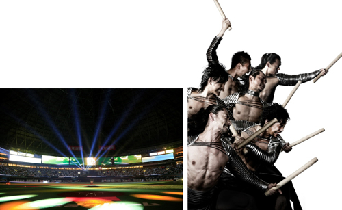 和太鼓エンターテイメント集団TAO×ホークス☆スターフラッシュ×ダンサーが一体となって、音と光の演出で優勝への決意を新たにします。世界が認めたTAOのパフォーマンスでドーム全体がドキドキ・ワクワクで満たされます。