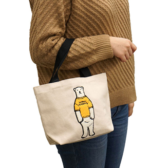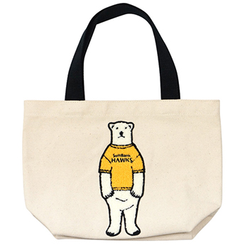 ほっこりかわいいベンジャミンシリーズのホークスオリジナルVerランチトートバッグ。サガラ刺繍で施したかわいいベンジャミンランチトートはランチタイムやお散歩に大活躍。