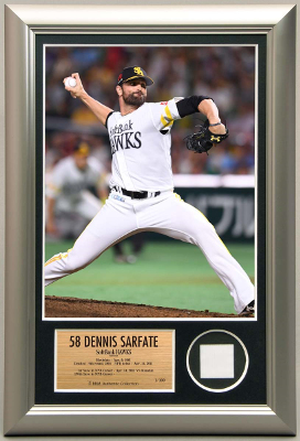 フォトパネルは、サファテ投手の投球シーンをコラージュフォトに、本人着用済みユニフォームの断片が封入しております!本人の直筆でサインと、シリアルナンバーが入ったプレミアムアイテムです。