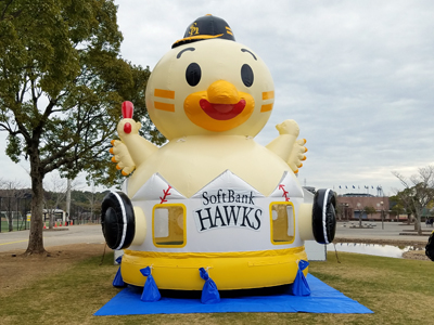ゴールデンウィークの4日間限定で、若鷹デザインのオリジナルクリアファイルを入場者へプレゼント!また、応援ボードを制作する「お絵かきアピールコンテスト」や小さなお子さまから大人の方まで、楽しめる「ふわふわ遊具」が大集合!他にも、はずれなしの「ガラポン抽選会」や、こどもの日限定の「ジェット風船」のセール、土日祝日限定グルメ、ホークス筑後ファンクラブ会員限定のグラウンド開放など、楽しさいっぱい!ゴールデンウィークはタマスタ筑後へ行こう!