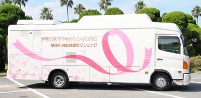 乳がん検診のきっかけ、意識づけとするため、福岡和白総合健診クリニックの検診車が登場。