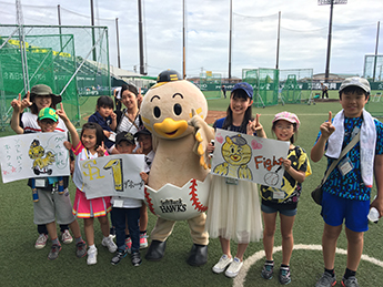 今回はストラックアウトや大縄跳び、ホークスOBの大野・河野氏が講師となって野球を教える、親子参加型のブルーホークを開催します♪