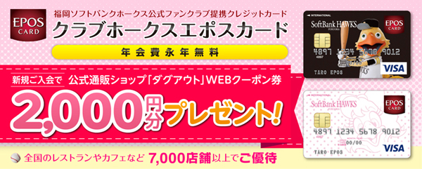 ※すでにエポスカード(クラブホークスエポスカードを含む)をお持ちのお客さまは、新規ご入会特典の対象外となります