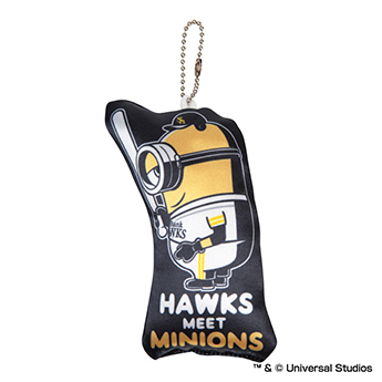 ホークスのユニフォームに身を包んだミニオンズがキュートなヴィジュアルになってTシャツや小物など、展開アイテムも豊富。