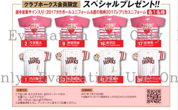 「選手直筆サイン入り!2017タカガールユニフォーム&鷹の祭典2017レプリカユニフォーム」を計8名様にプレゼントします♪(応募締切は7月31日(月)まで)