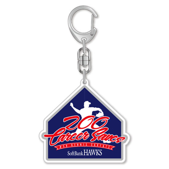 サファテ投手の投球シーンのシルエットと200セーブを示す「200 CAREER SAVE」を配置した記念アクリルキーホルダーです。