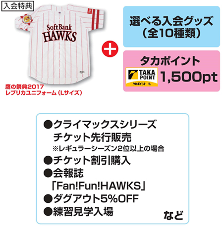 「お試しプラン」とは、シーズン後半からの入会ということで、お得な割引価格で入会でき、通常特典に加え、目玉特典として「鷹の祭典2017レプリカユニフォーム(Lサイズ)」がもらえます。