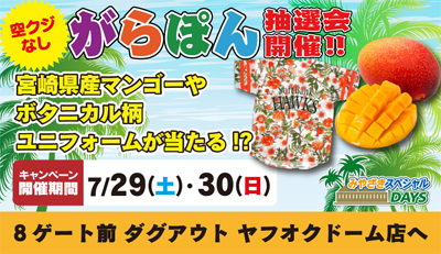 宮崎県産のマンゴーなどが当たる「がらぽん抽選会」や「BBMホークスベースボールカード」九州先行販売!