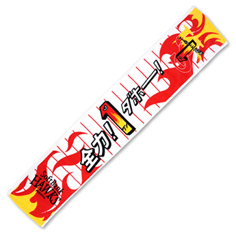 「全力!1ダホー!」ロゴをデザインした応援必須アイテムのタオルマフラーを首からかけてホークスを全力で応援しよう!