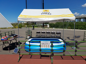 この3日間、タマスタ筑後球場前広場には、小さなお子様でも遊べるプールや水でっぽうコーナーを設置!!ミストテントもあるので、ご家族の方も一緒に涼しく過ごすことができます!!