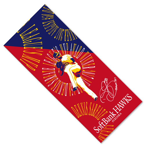 サファテ投手の母国アメリカ合衆国の国旗をイメージした赤と紺をベースに、自身の投球シーンとサインをモチーフにししたモダンなデザインの記念フェイスタオルです。これをかかげてサファテ投手を応援しよう!