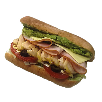 ハムとチーズ、ローストしたミート(本商品ではローストチキン)に、キューバでもよく食べられているアボカドをトッピングしたホームランキングサンドと呼ぶにふさわしいボリュームのあるサンドイッチです。