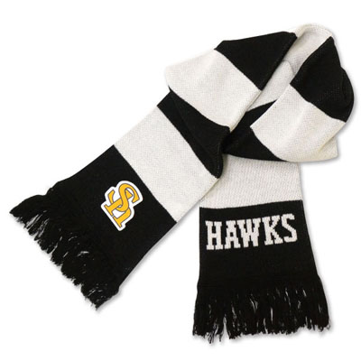 Shワッペンとロゴがワンポイント、モノトーンのボーダー柄であわせやすくたっぷりとしたサイズでボリュームのあるニットマフラーです。男女問わず使える冬の定番アイテムです。