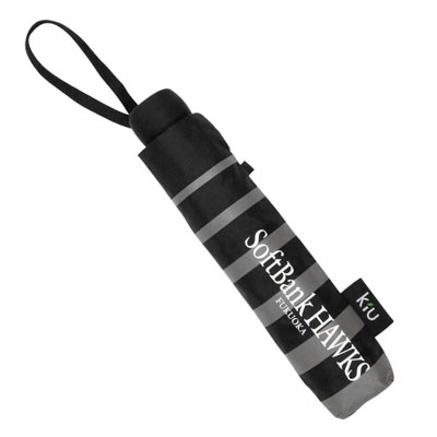 『THE GO-OUT STYLE ANYWHERE YOU LIKE』「自由な発想」というシンプルなコンセプトを追求するレインウェアメーカーの『Kiu』とホークスのコラボ畳み傘。展開時直径約100cmの大型畳み傘は男女問わず使えるシンプルなデザインで使いやすく、贈り物にもおススメのアイテムです。