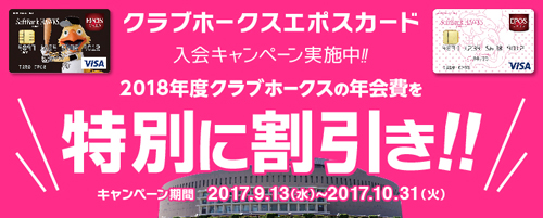 ただいま、「クラブホークスエポスカード新規ご入会キャンペーン」を実施中!