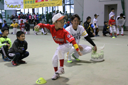 触れ合い野球教室(投げる・打つ・捕る・走る・遊ぶ)、集合写真撮影、プレゼント抽選
