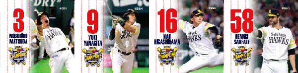 レギュラーシーズンで活躍したホークス選手と今年の優勝ロゴがデザインされた特別な優勝ロゴステッカーをプレゼント致します。