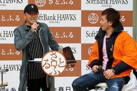 12月3日(日)、松田宣浩選手が岩田屋きらめき広場で行われたふるさと納税サイト「さとふる」ホークス応援フェスタにゲスト出演してトークショーを行いました。同イベントには福岡県春日市やホークスキャンプ地の宮崎市など九州の8自治体が参加し、ふるさと納税や地域の魅力について紹介。松田選手も「妻がふるさと納税を活用したことがあって、自宅で美味しいお肉を食べたことがあります。これを機に自分でやってみたい」と意欲満々でした。